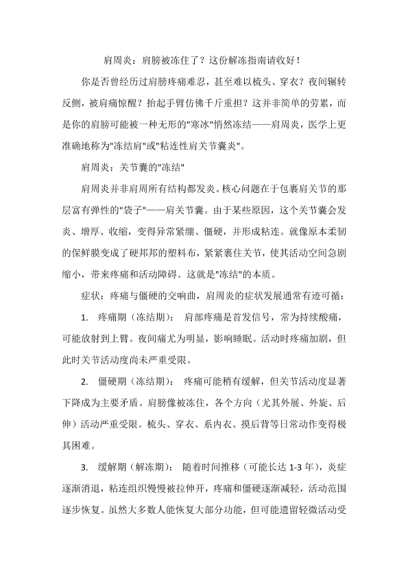肩周炎:肩膀被冻住了?这份解冻指南请收好!