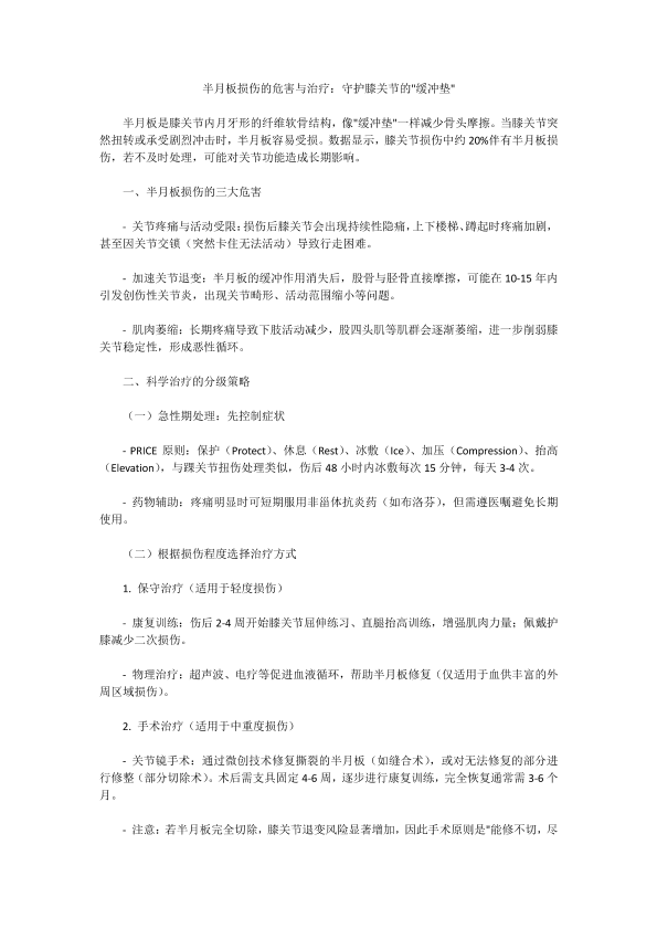 半月板损伤的危害与治疗