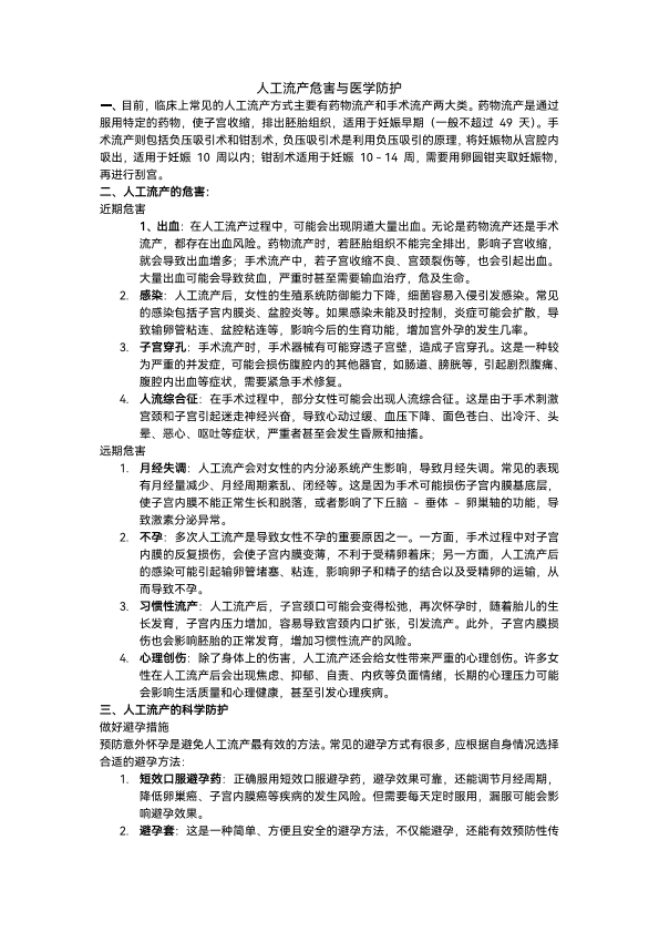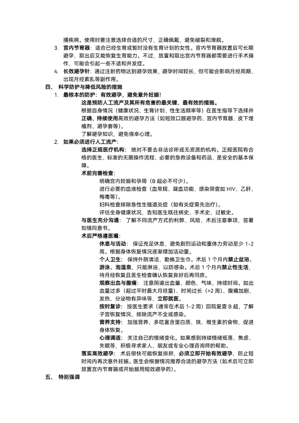 人工流产危害与防护医学科普