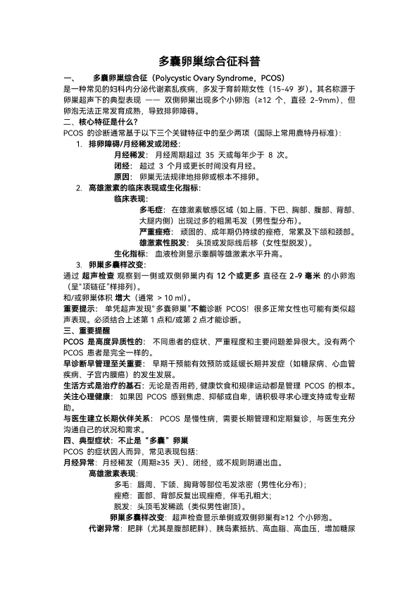 多囊卵巢综合征科普