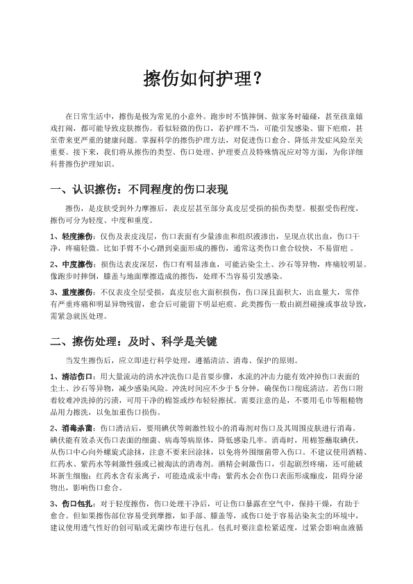 擦伤如何护理