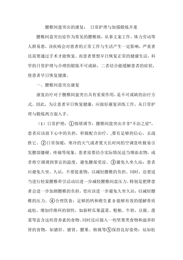 腰椎间盘突出的康复: 日常护理与加强锻炼并重