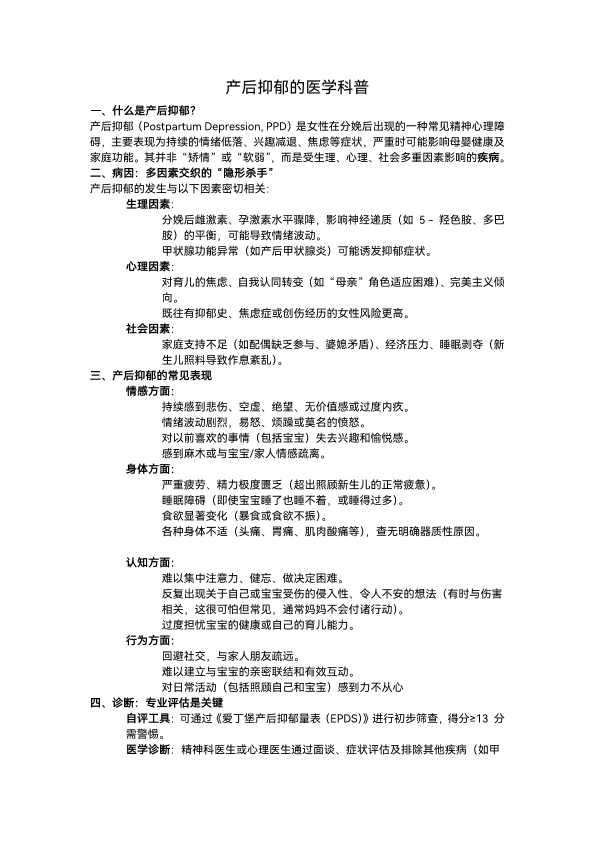 产后抑郁的医学科普