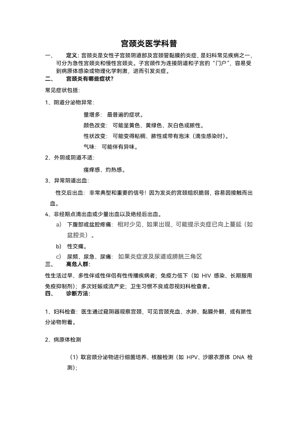 宫颈炎的医学科普