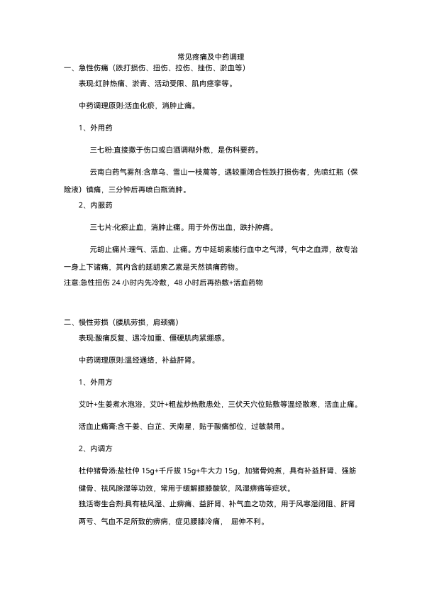 常见疼痛及中药调理