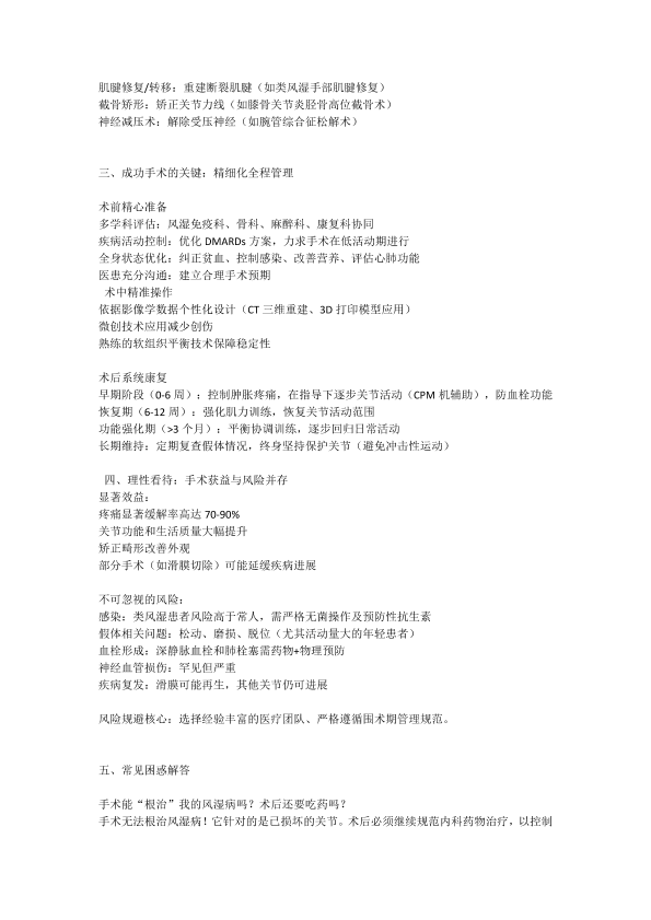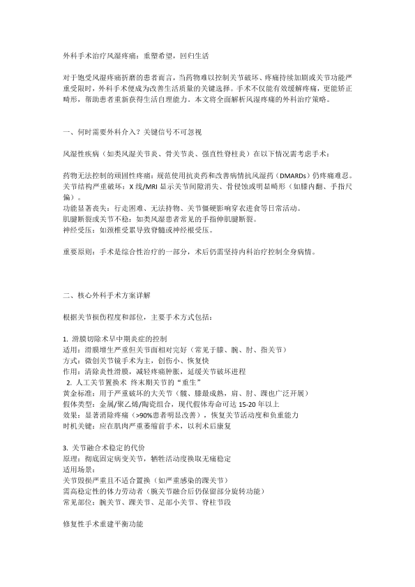 外科手术治疗风湿病痛