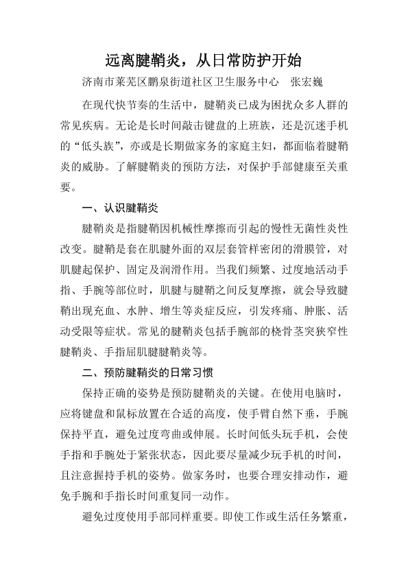 远离腱鞘炎,从日常防护开始