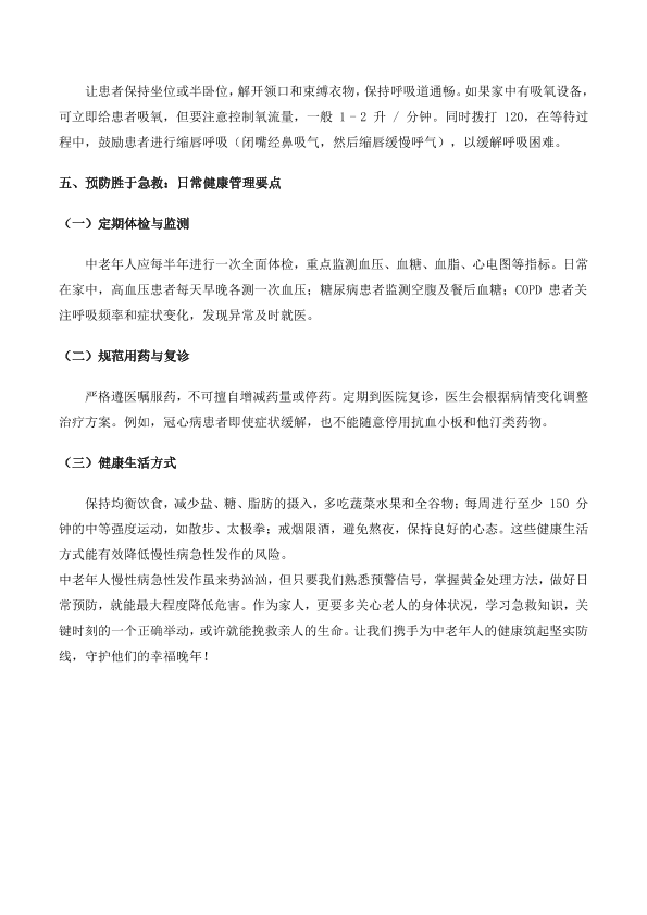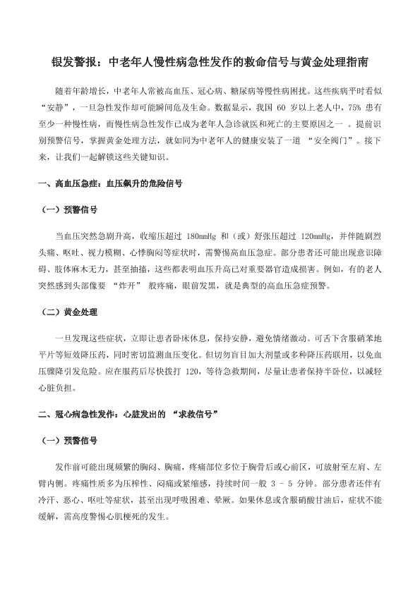 银发警报:中老年人慢性病急性发作的救命信号与黄金处理指南