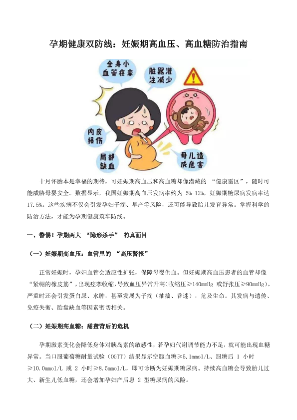 孕期健康双方线:妊娠期高血压、高血糖防治指南