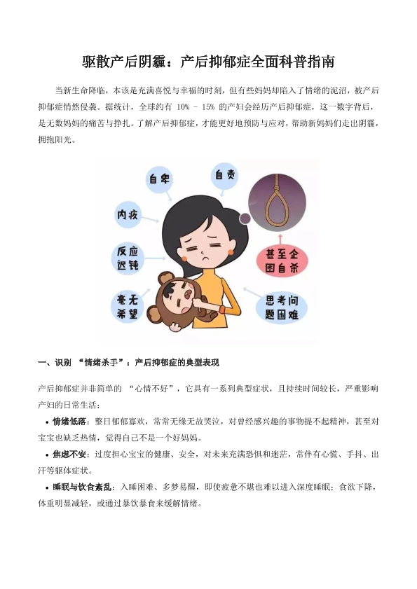 驱散产后阴霾:产后抑郁症全面科普指南