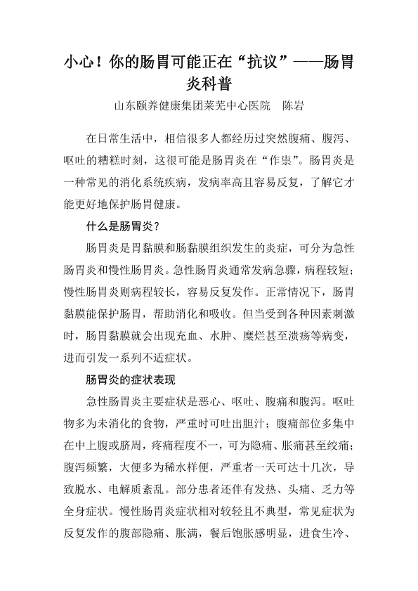 小心!你的肠胃可能正在“抗议”——肠胃炎科普