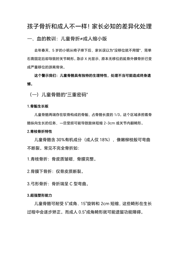 孩子骨折和成人不一样,家长必知的差异化处理