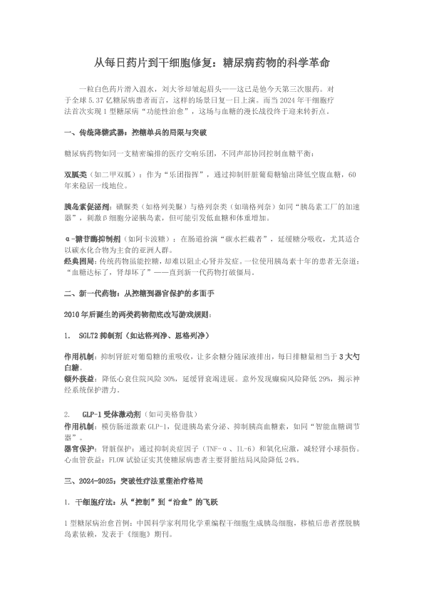 从每日药片到干细胞修复:糖尿病药物的科学革命