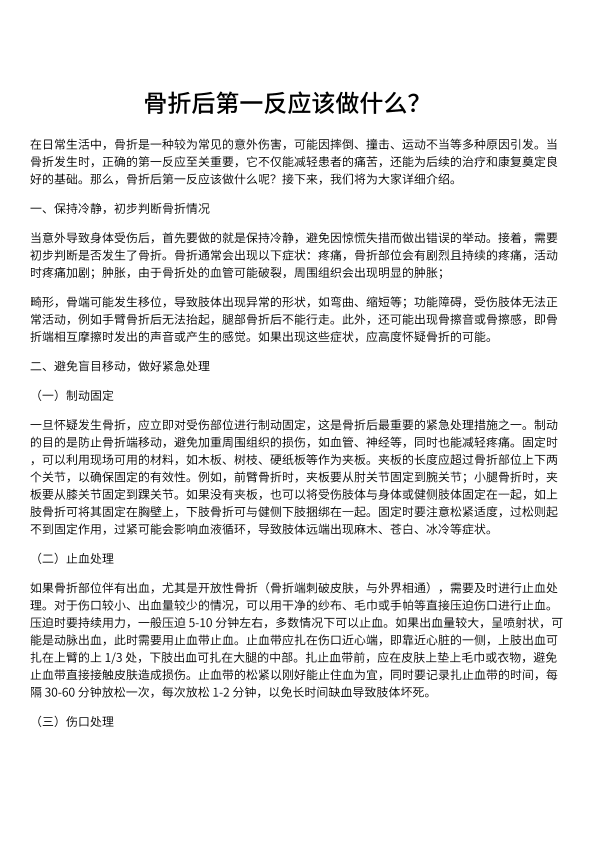 骨折后第一反应该做什么?