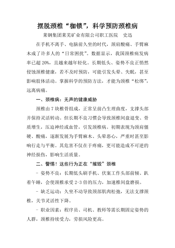 摆脱颈椎“枷锁”,科学预防颈椎病