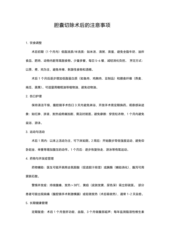 胆囊切除术后的注意事项