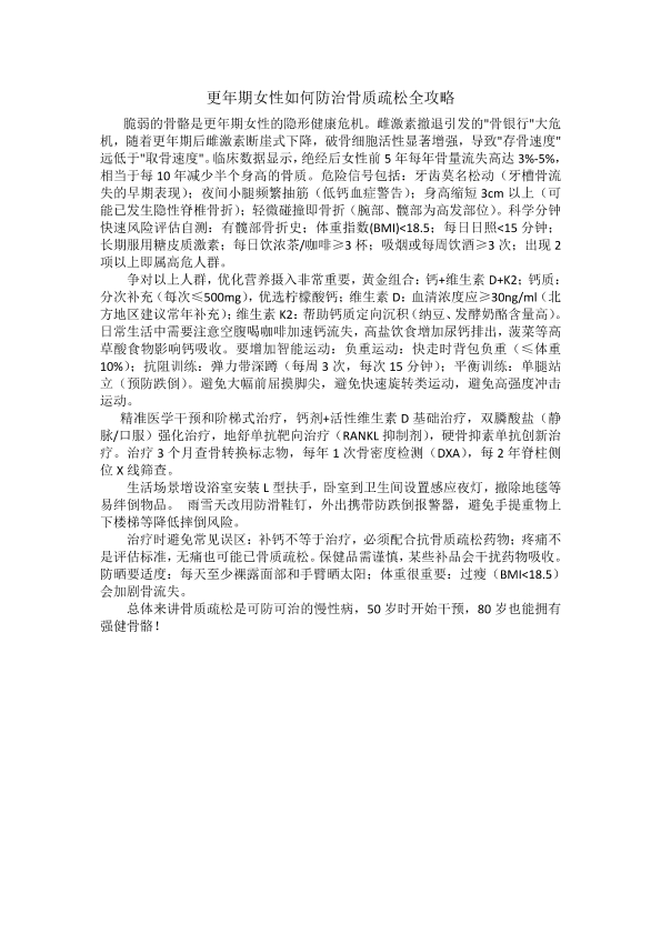 更年期女性如何防治骨质疏松全攻略