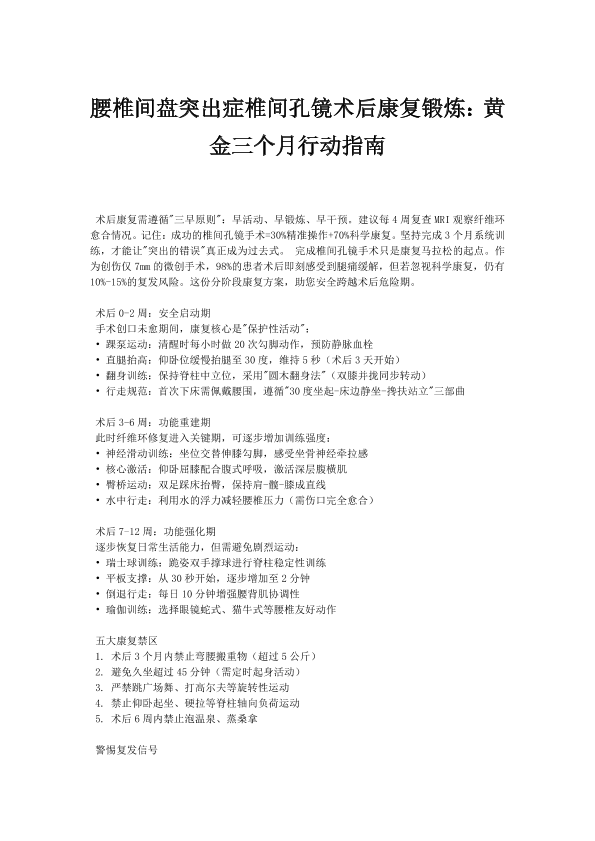 腰椎间盘突出症椎间孔镜术后康复锻炼