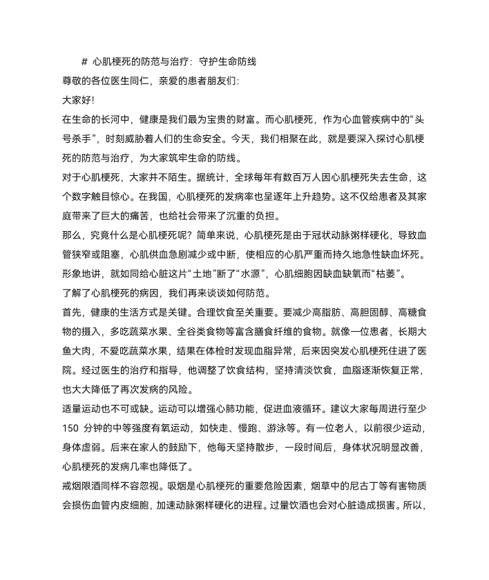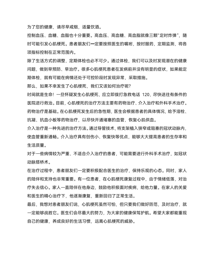 心肌梗死的防范与治疗