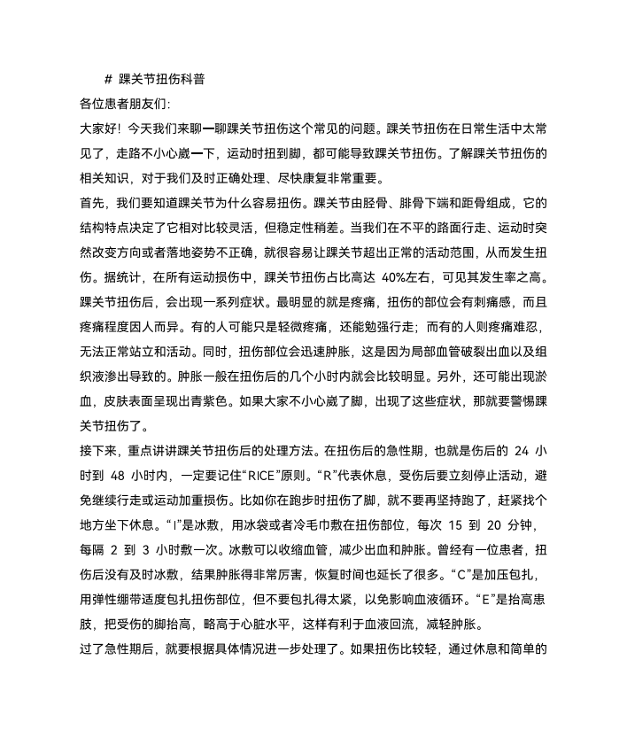 踝关节扭伤科普