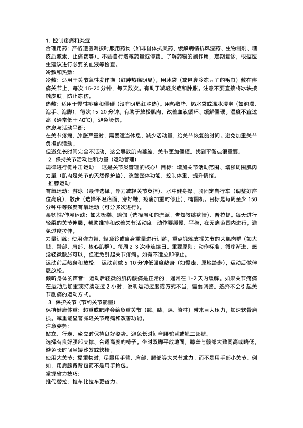 关节炎日常护理