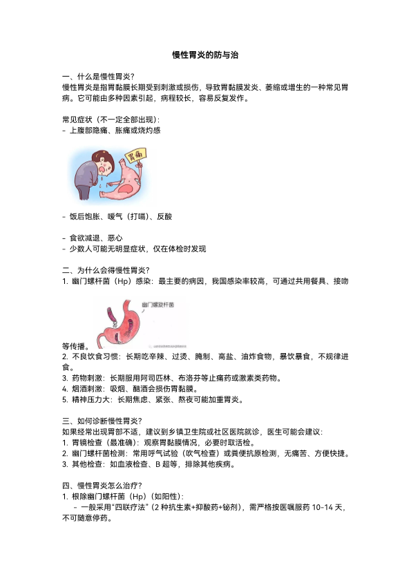 慢性胃炎的诊治与预防