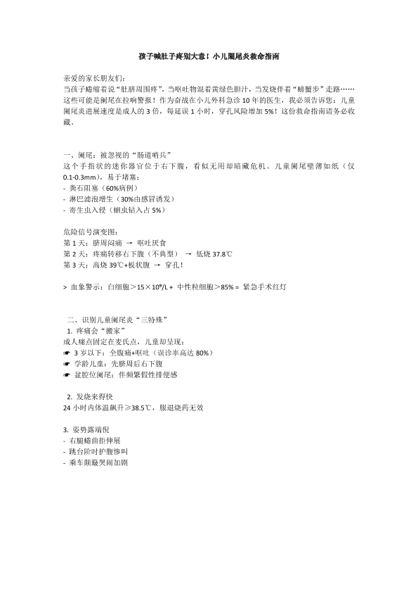孩子喊肚子疼别大意!小儿阑尾炎救命指南