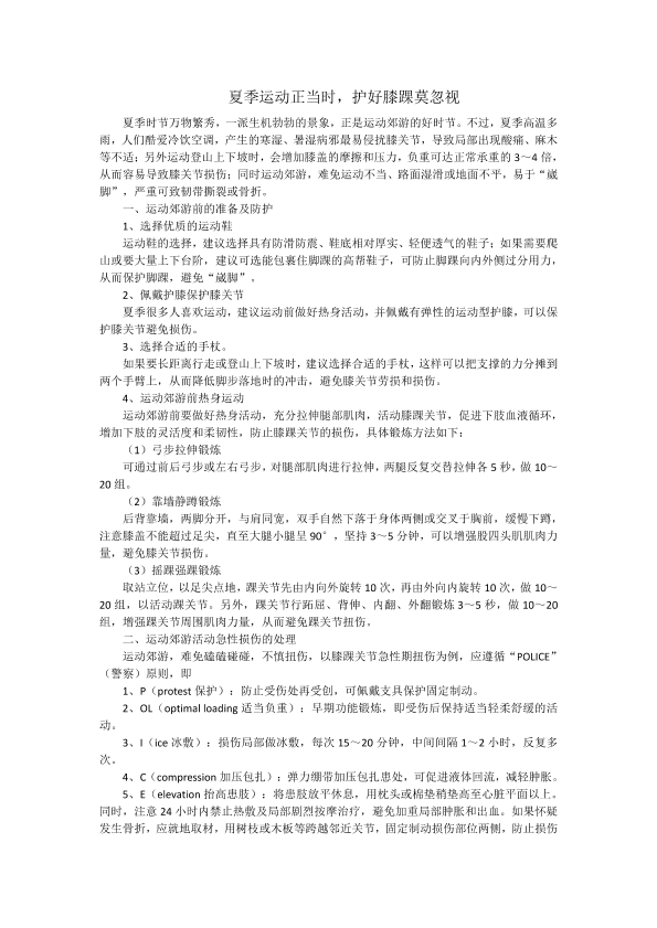 夏季运动正当时,护好膝踝莫忽视