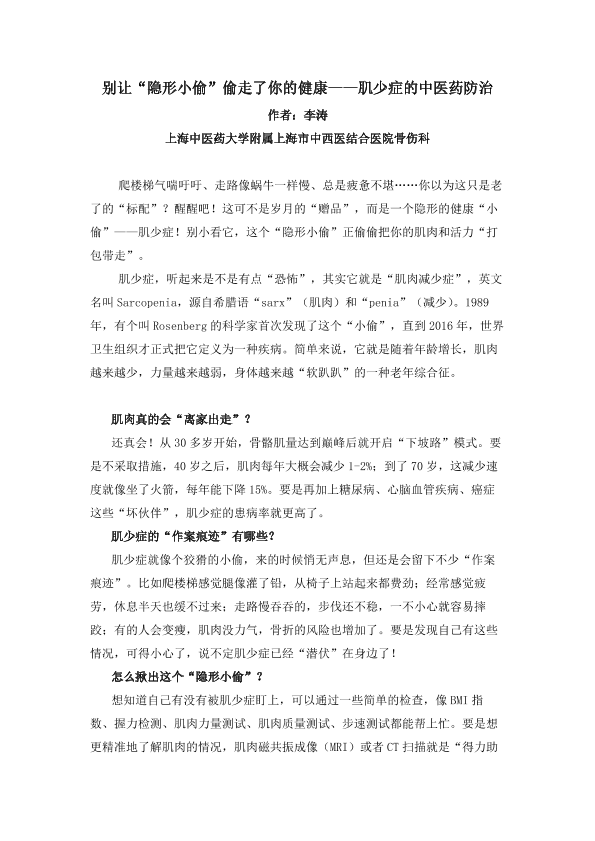 文字类-别让“隐形小偷”偷走了你的健康——肌少症的中医药防治-李涛