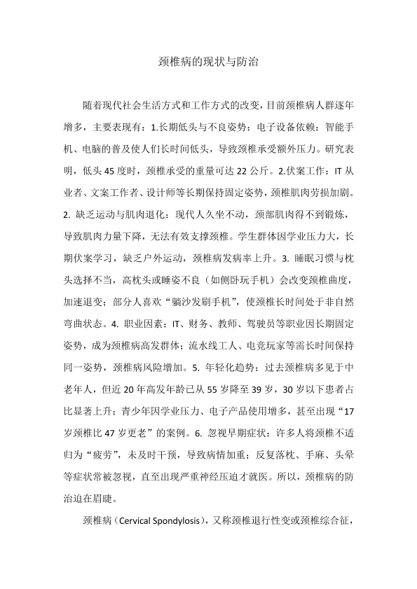 颈椎病的现状与防治