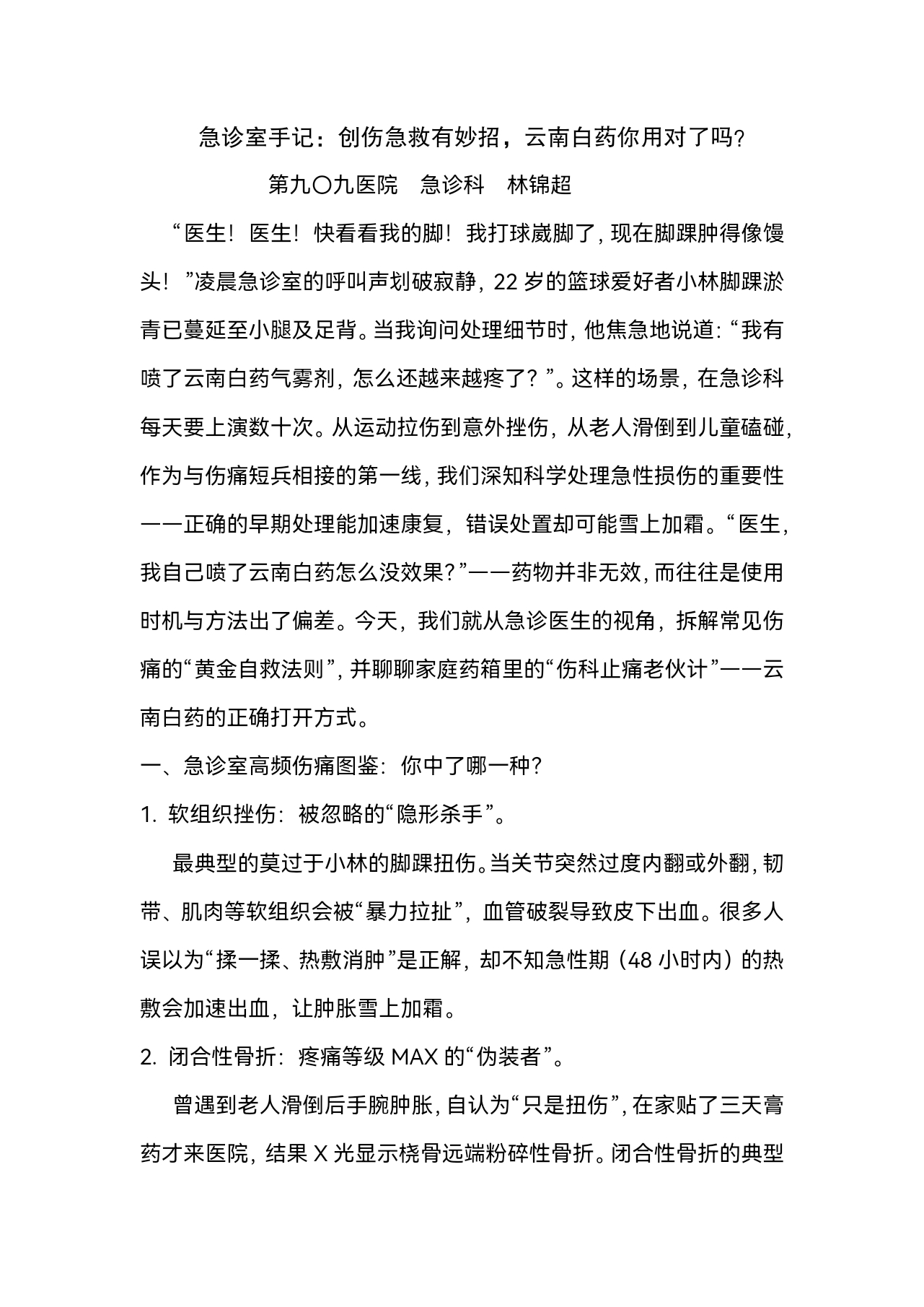 急诊室手记:创伤急救有妙招,云南白药你用对了吗?