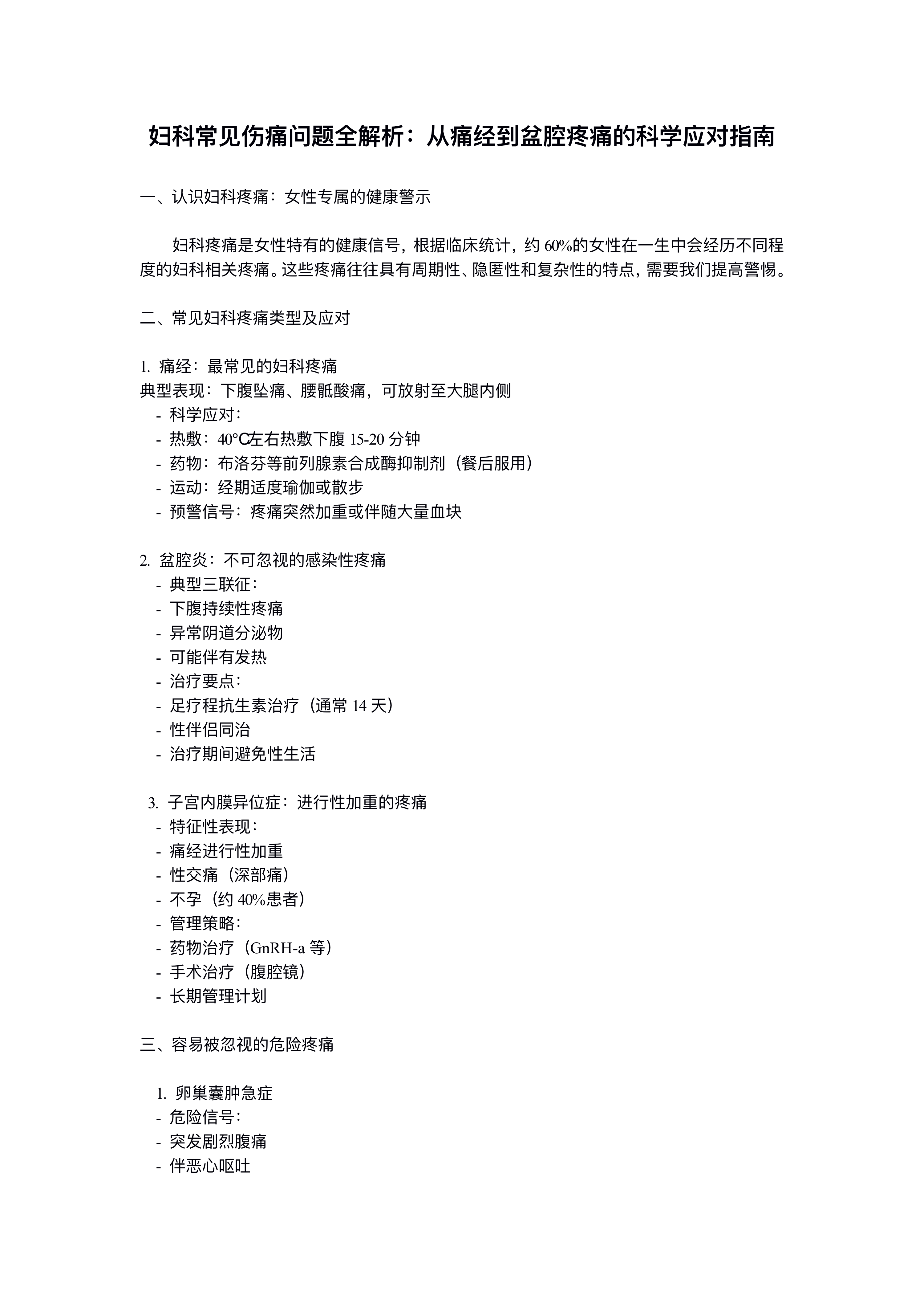 妇科常见伤痛问题全解析:从痛经到盆腔疼痛的科学应对指南