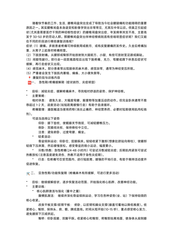腰椎间盘突出伴神经根病康复训练