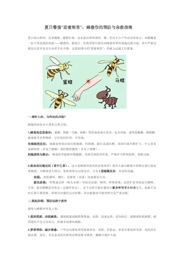 夏日警惕"甜蜜刺客":蜂蜇伤的预防与急救指南