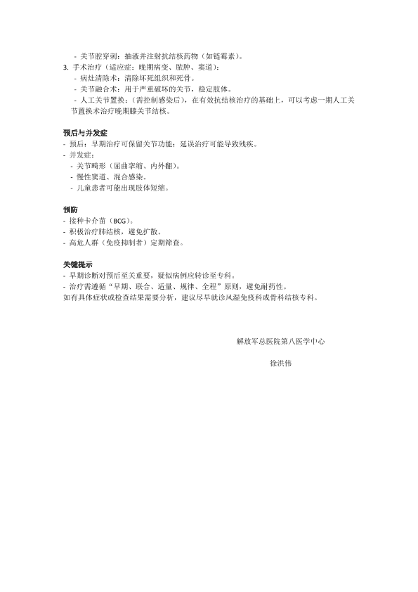膝关节结核的临床诊疗事项