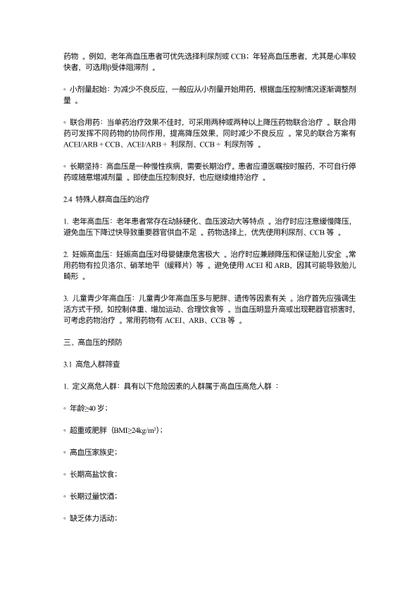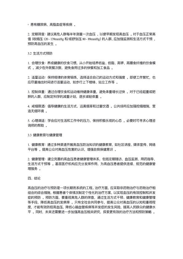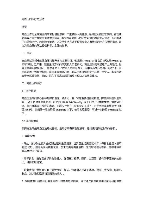 高血压的治疗与预防