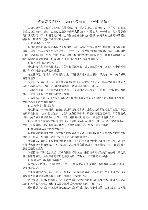 疼痛背后的秘密:如何辨别运动中的慢性损伤?