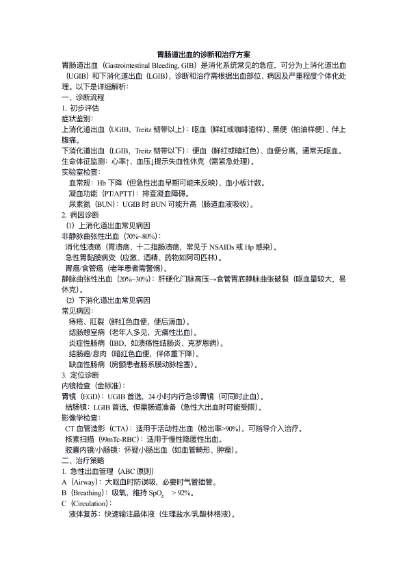 胃肠道出血的诊断和治疗方案