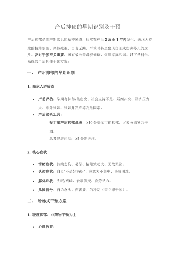 产后抑郁的早期识别及干预