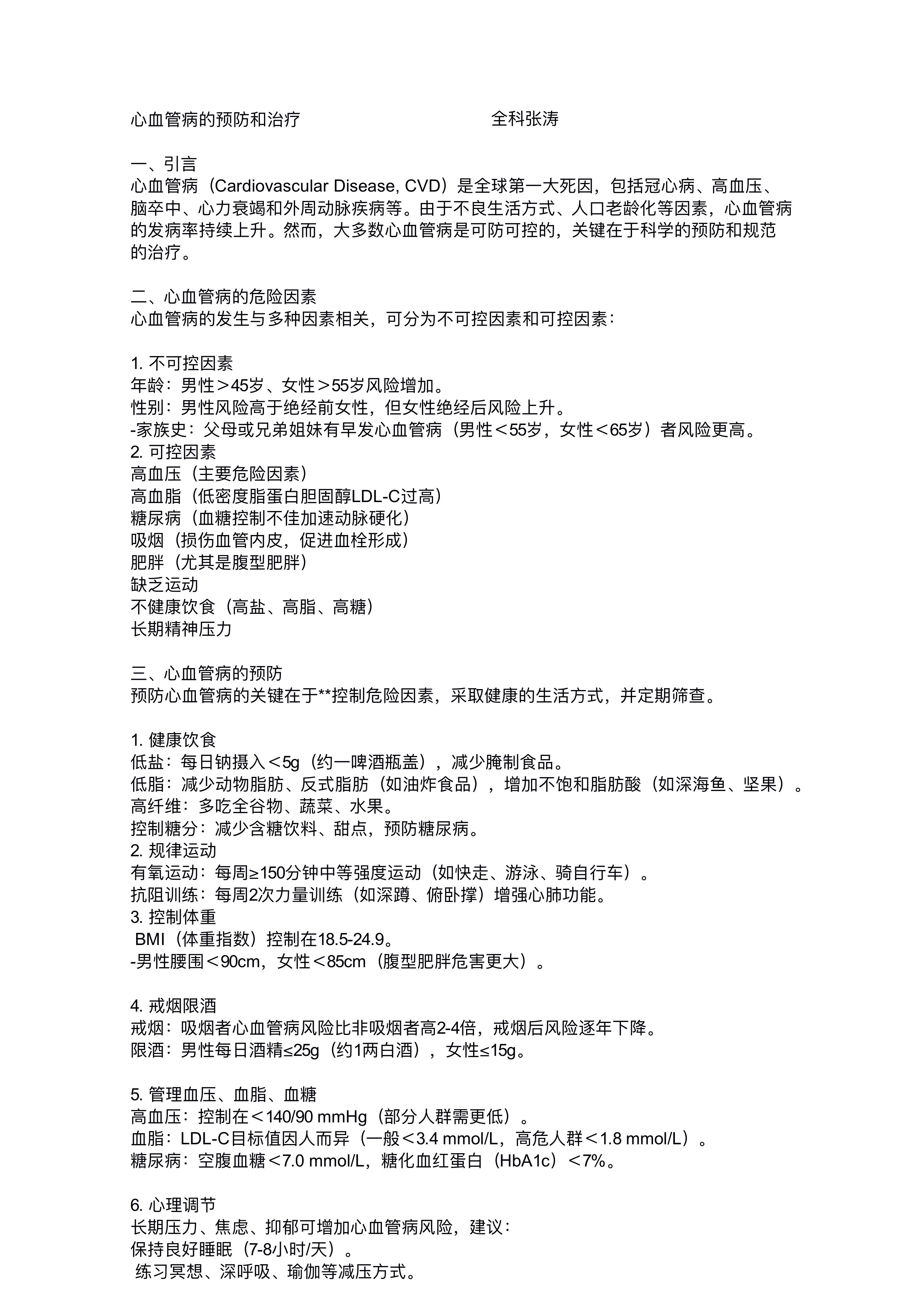 心血管预防和治疗