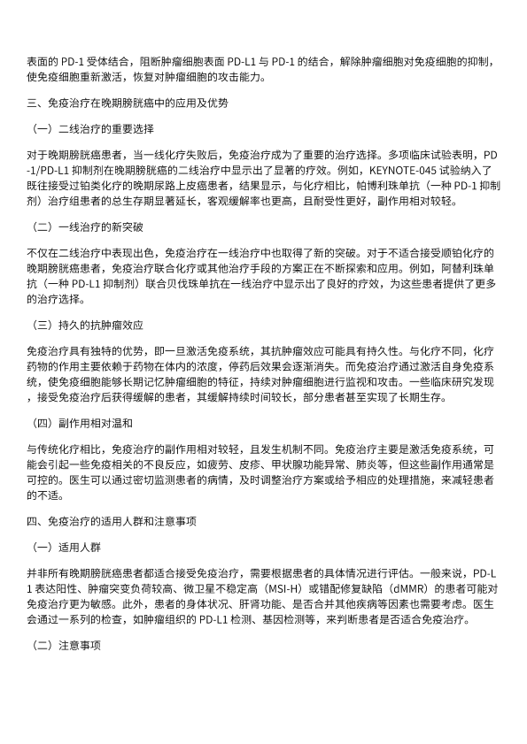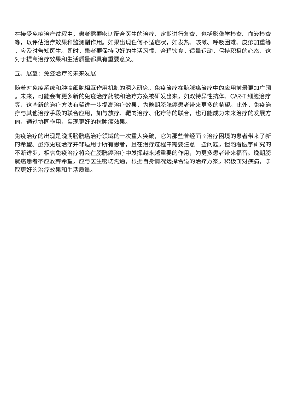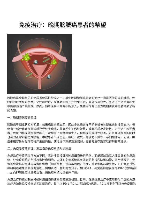 免疫治疗:晚期膀胱癌患者的希望