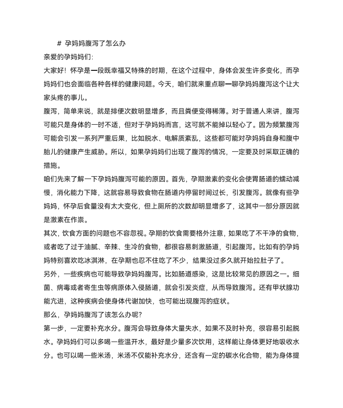 孕妈妈腹泻了怎么办?