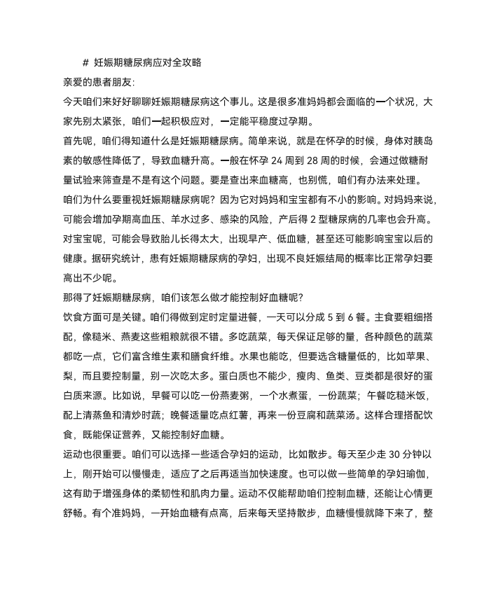 妊娠期糖尿病应对全攻略