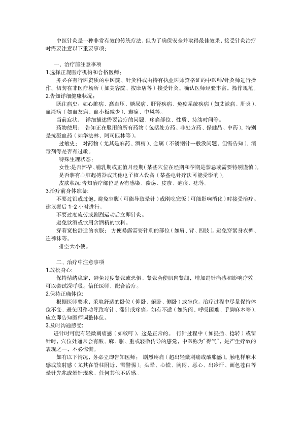 中医针灸注意事项
