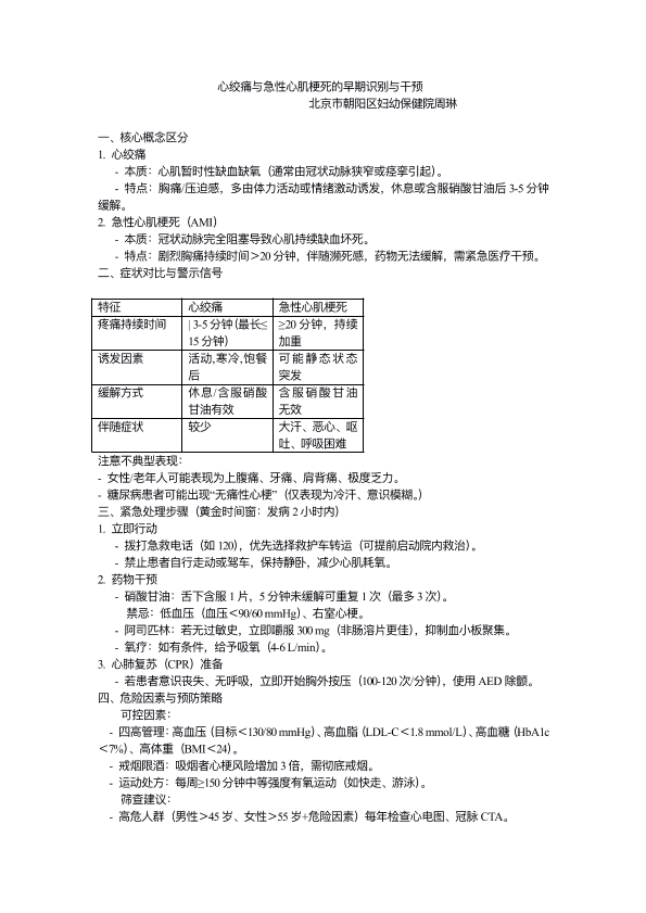 心绞痛与急性心肌梗死的早期识别与干预
