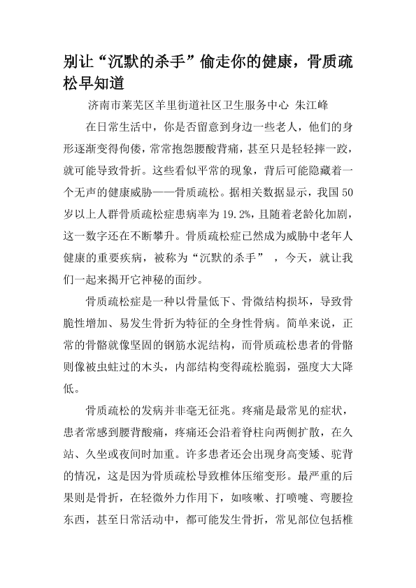 别让“沉默的杀手”偷走你的健康,骨质疏松早知道