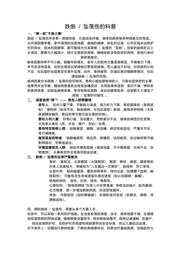 跌倒坠落伤的全方位科普