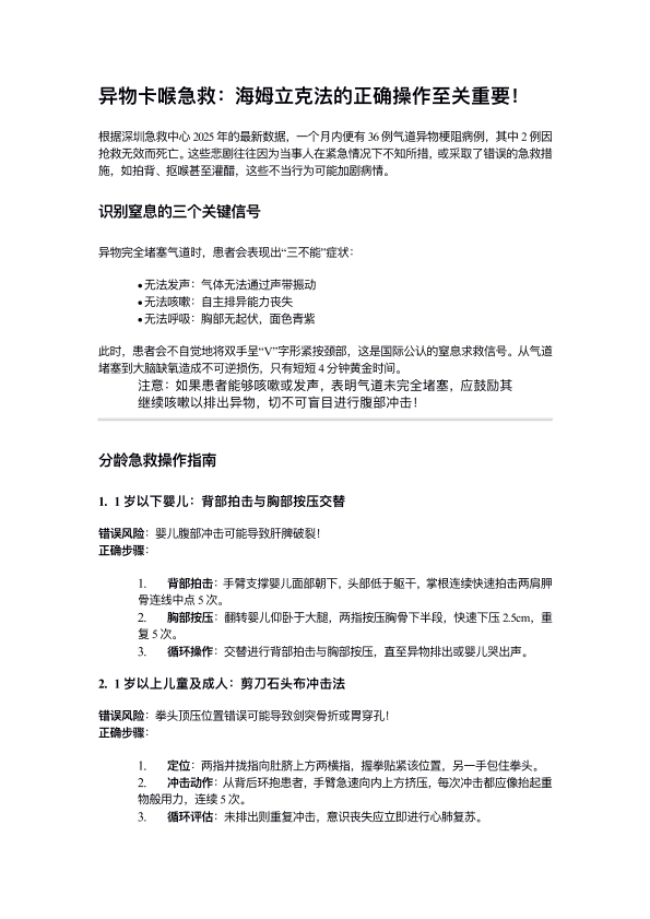 异物卡喉急救:海姆立克法的正确操作至关重要!