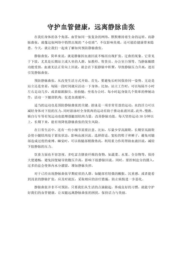 守护血管健康,远离静脉曲张