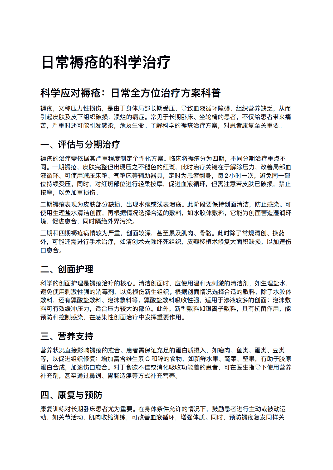 日常褥疮的科学治疗